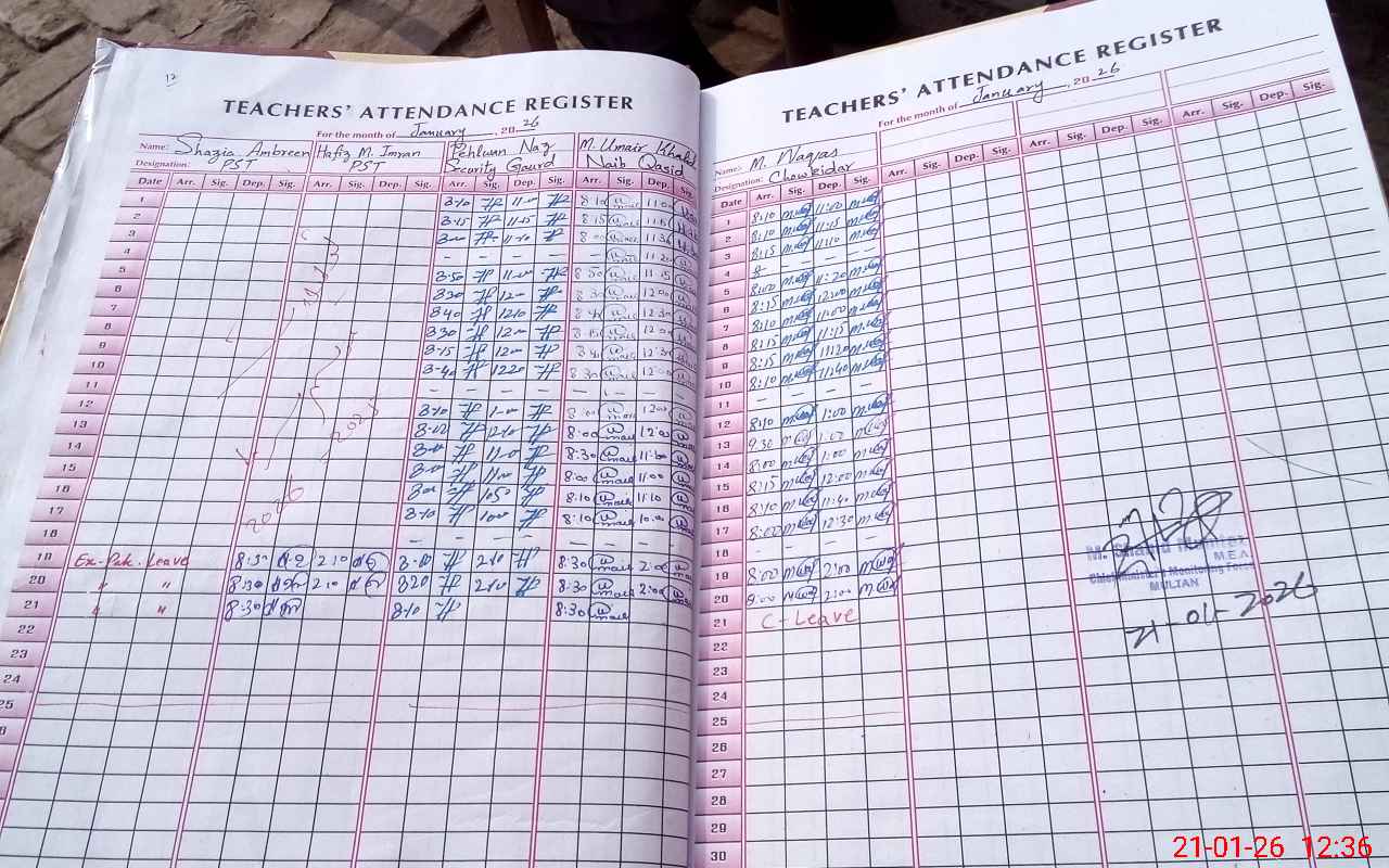 | Attendance Register | Head Teacher | MEA with School | Visit Proof |