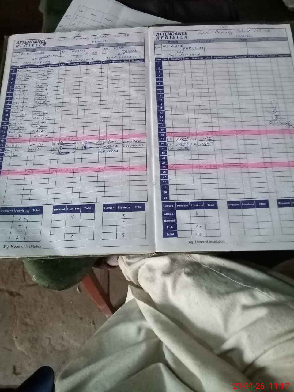 | Name: MTA**** JU**** Designation: (School Headmaster's/Headmistress's) PST Phone/Cell Number: 03**** |