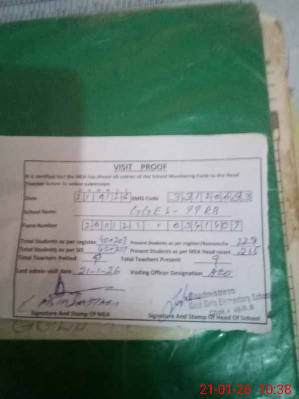 | Certified that this School was Inspected by the Undersigned MEA/DMO Today and the Information Stated Above is as Per Record. | |||||