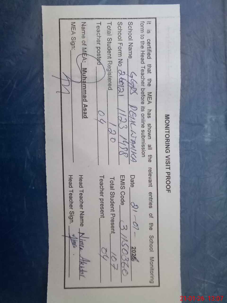 | EMIS Code: 31150360 | Name of School: GGPS PAHALWAN KA | |||
