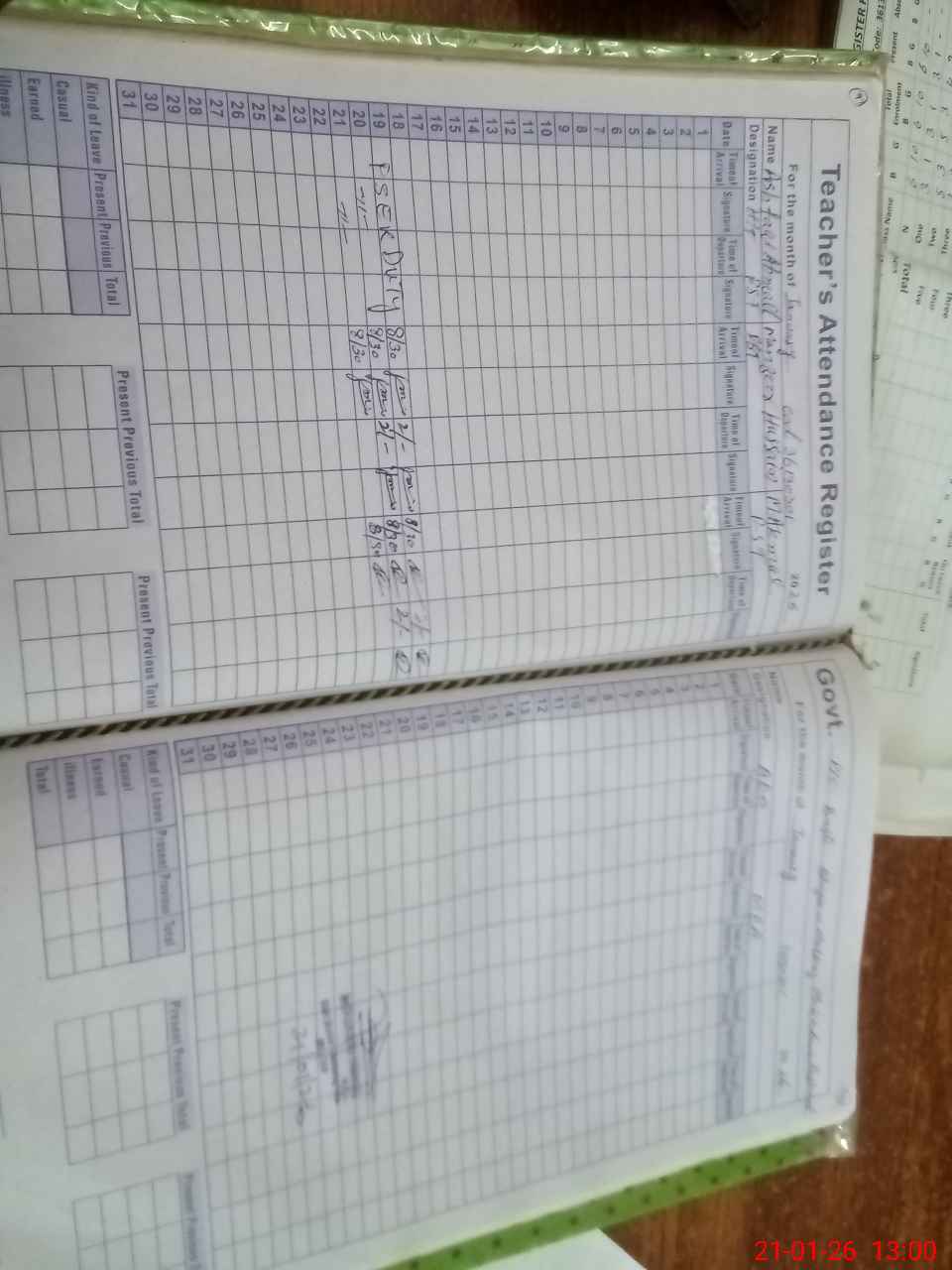 | CNIC | Full Name | Designation | R/C | Absence During Last Calender Month |