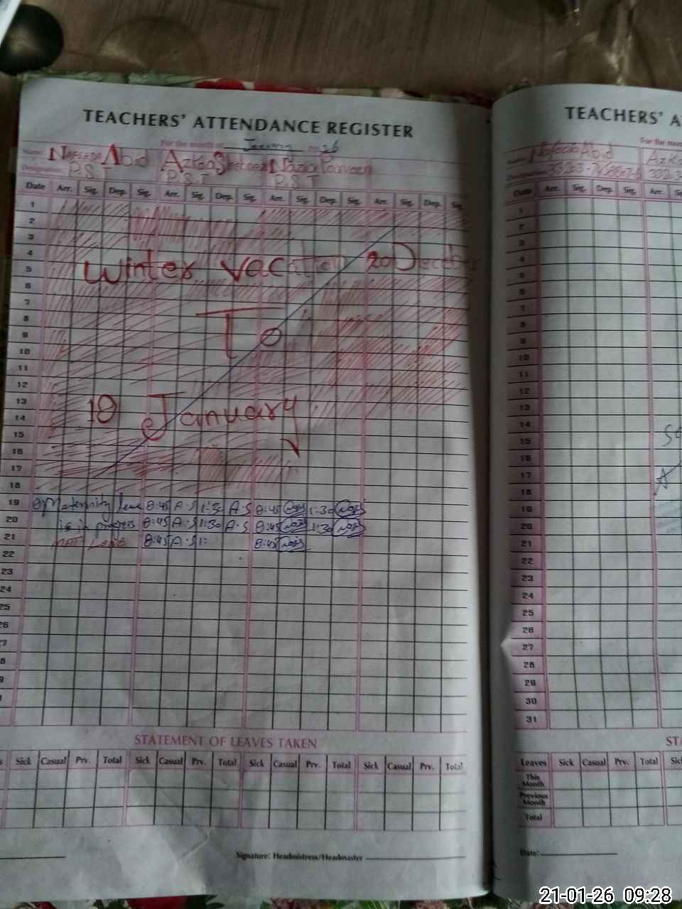| Remarks (Use Separate Page if Required): NSB and FTF record not updated PST nafeesa abid absent from 19Jan2026 | |||||