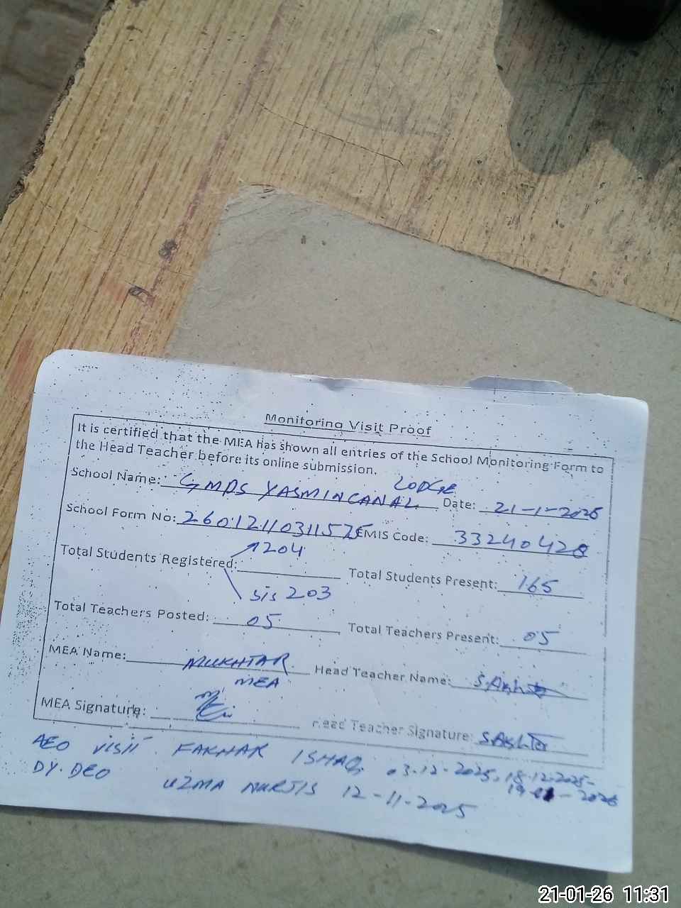 | EMIS Code: 33240428 | Name of School: GMPS YASMIN CANAL LODGE | |||