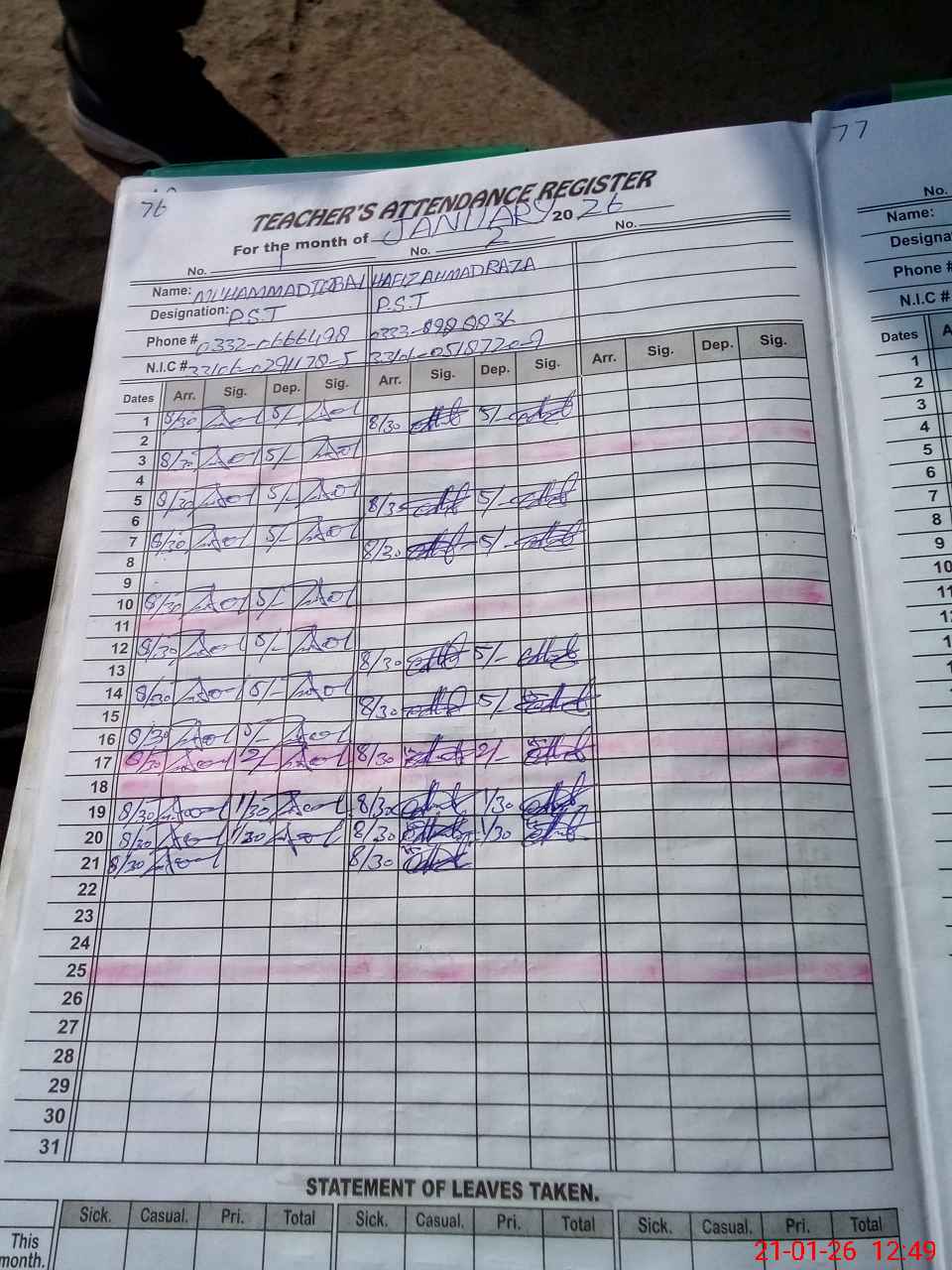 | Name: MU**** IQ**** Designation: (School Headmaster's/Headmistress's) PST Phone/Cell Number: 03**** |