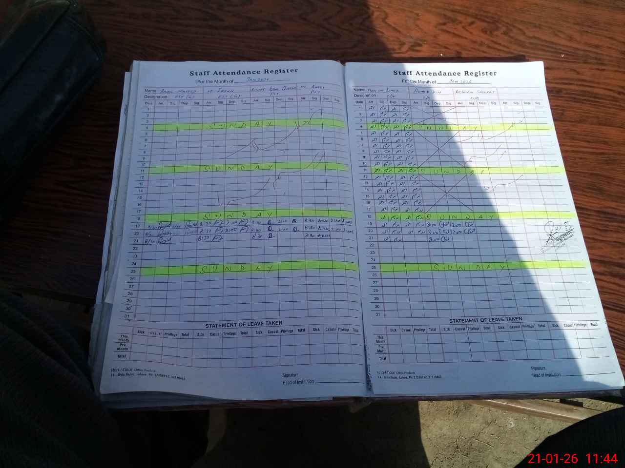 | CNIC | Full Name | Designation | R/C | Absence During Last Calender Month |