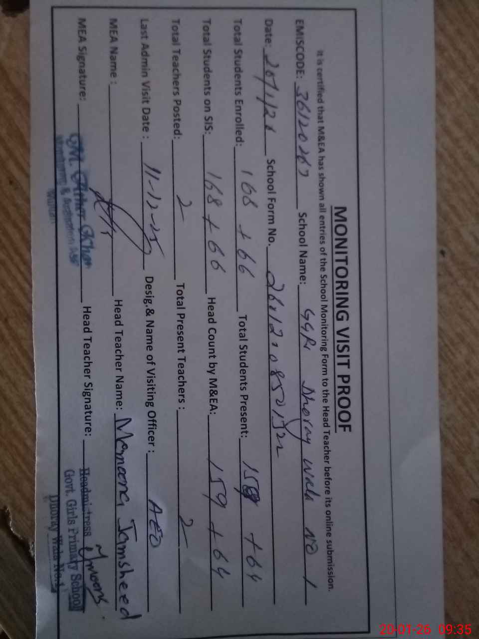 | EMIS Code: 36120267 | Name of School: GGPS DHORAY WALA NO.1 SHUJABAD | |||