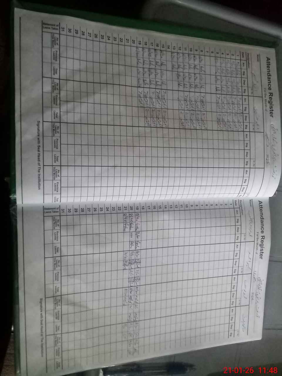 | CNIC | Full Name | Designation | R/C | Absence During Last Calender Month |