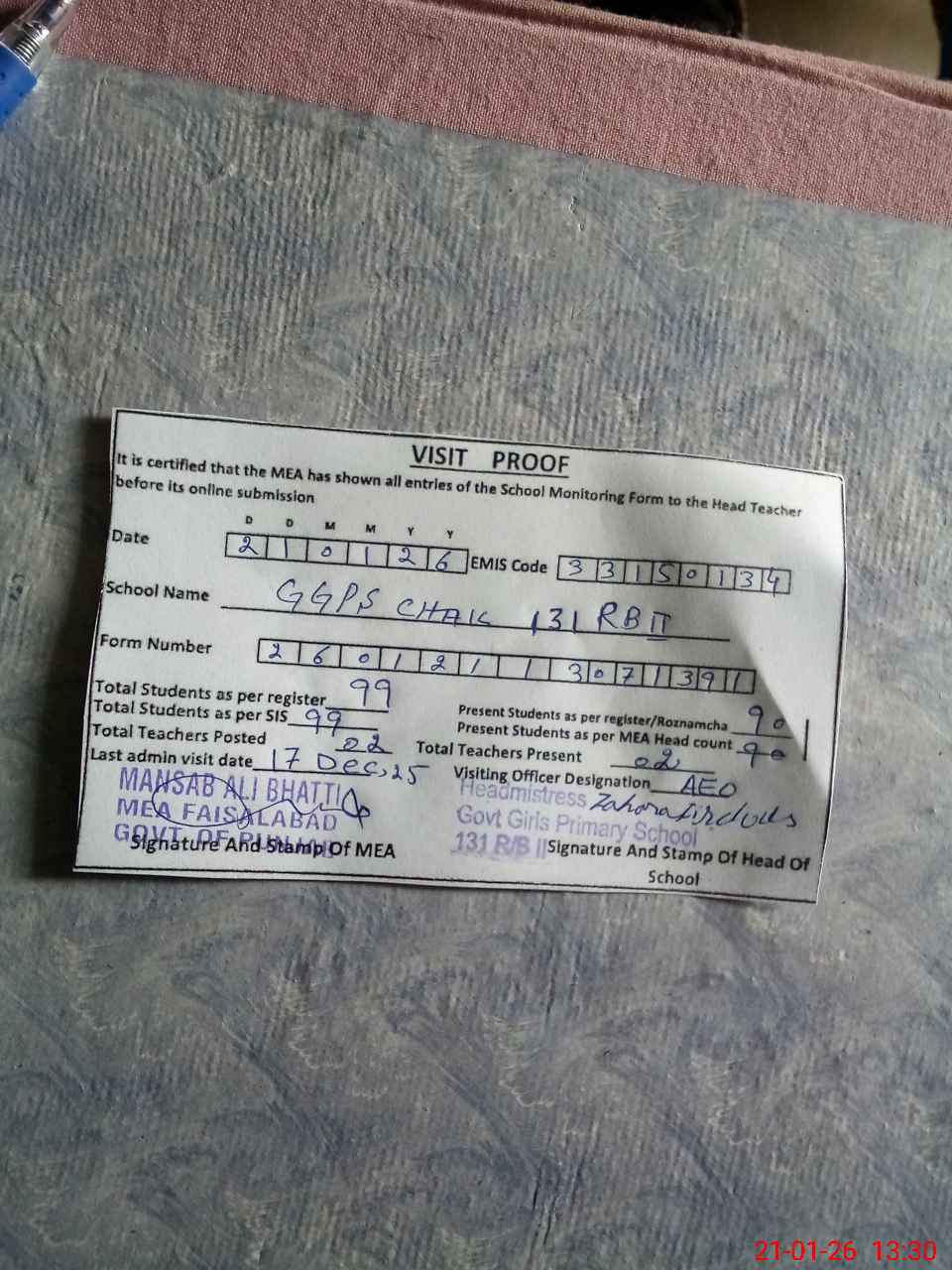 | EMIS Code: 33150134 | Name of School: GGPS CHAK 131 RB II | |||