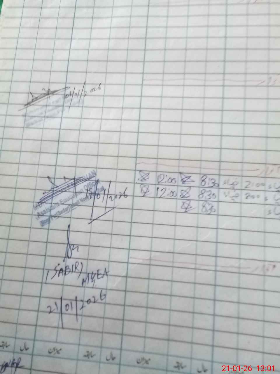 | Remarks (Use Separate Page if Required): no teacher absent total students on register 209 total students on SiS 209 Last admin visit by DEO on 22 Dec 2025 | |||||