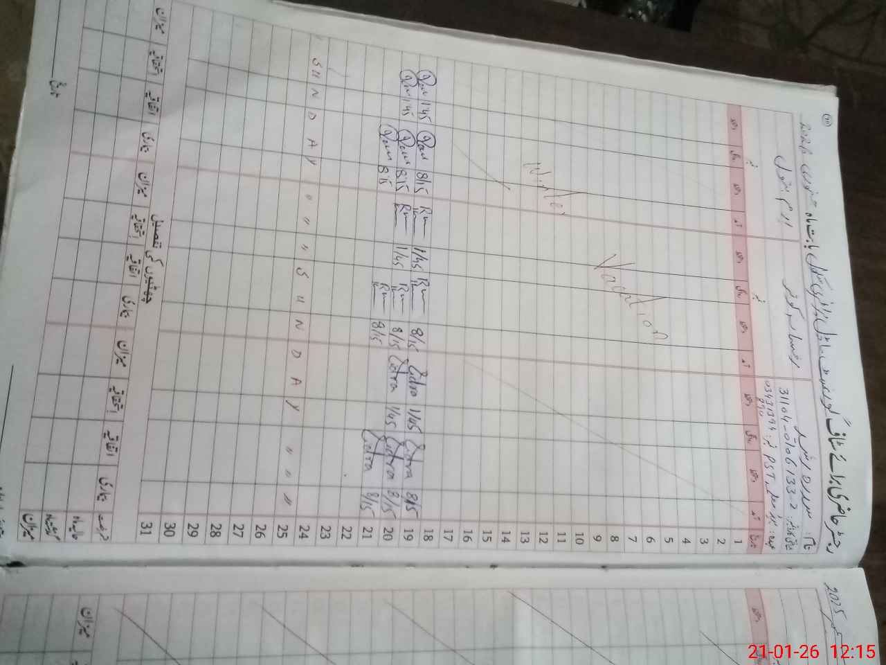 | CNIC | Full Name | Designation | R/C | Absence During Last Calender Month |