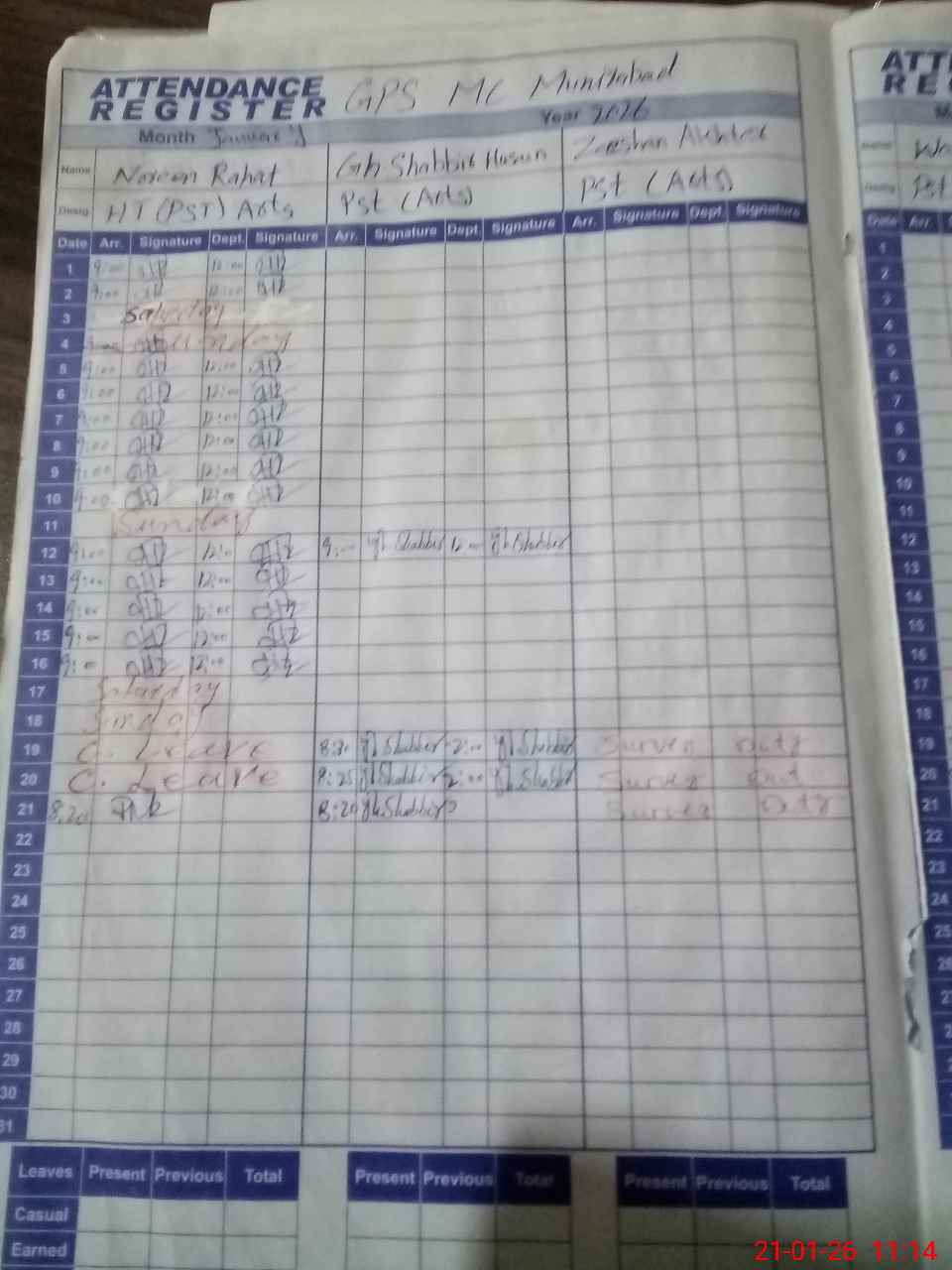 | CNIC | Full Name | Designation | R/C | Absence During Last Calender Month |