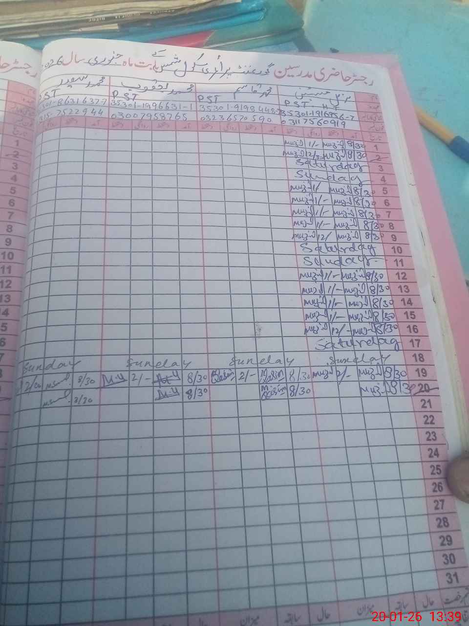 | Name: Mu**** Ah**** Designation: (School Headmaster's/Headmistress's) PST Phone/Cell Number: 03**** |