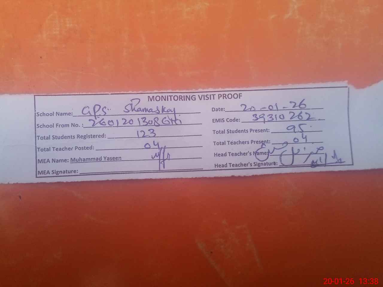 | EMIS Code: 39310262 | Name of School: GPS SHAMAS KAY | |||