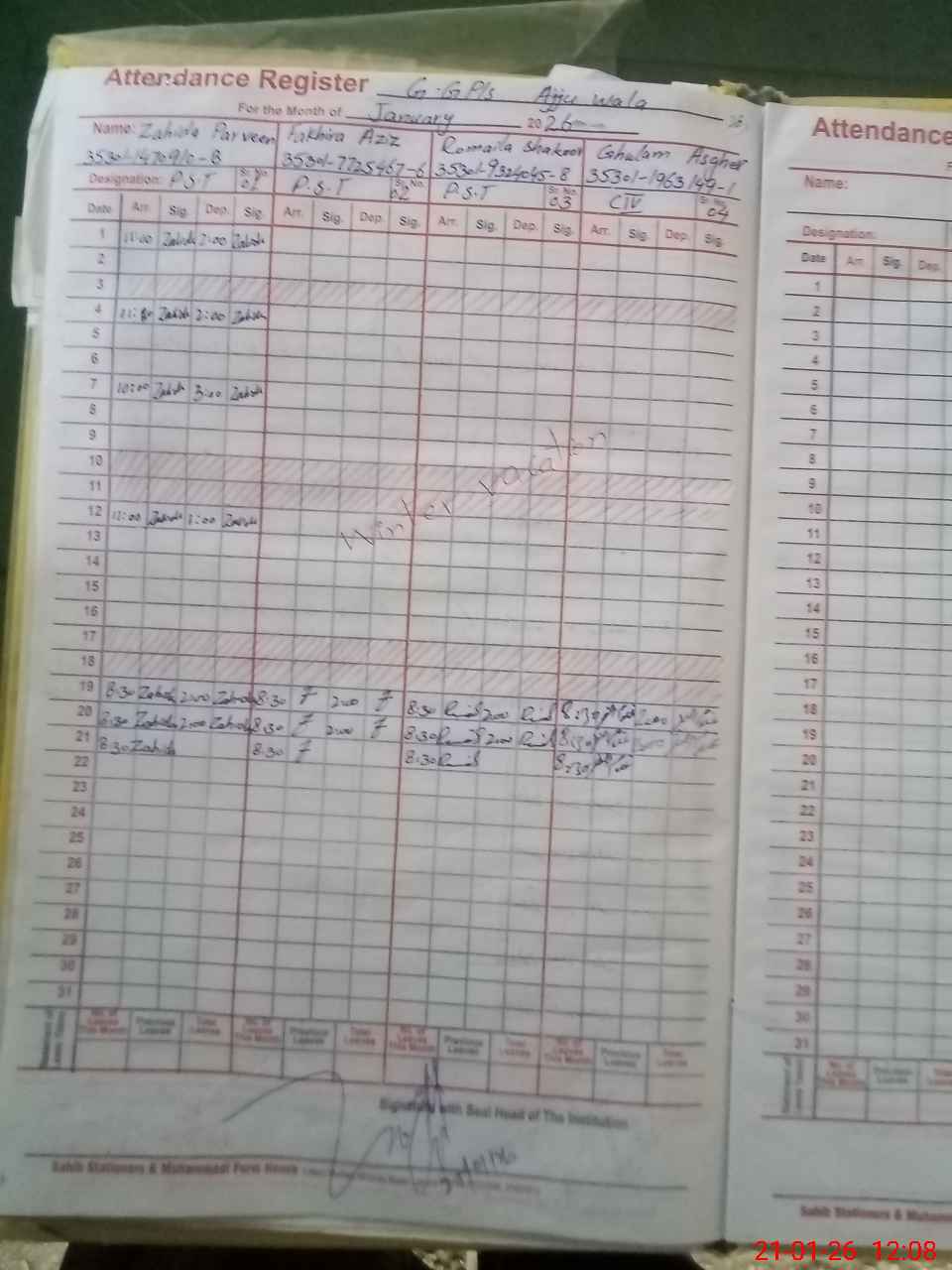 | Name: Za**** Pe**** Designation: (School Headmaster's/Headmistress's) PST Phone/Cell Number: 03**** |