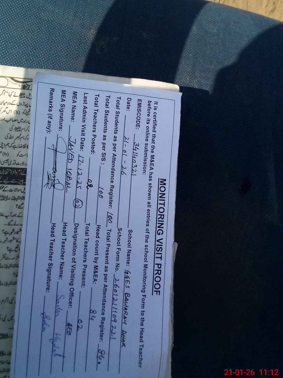 | Certified that this School was Inspected by the Undersigned MEA/DMO Today and the Information Stated Above is as Per Record. | |||||