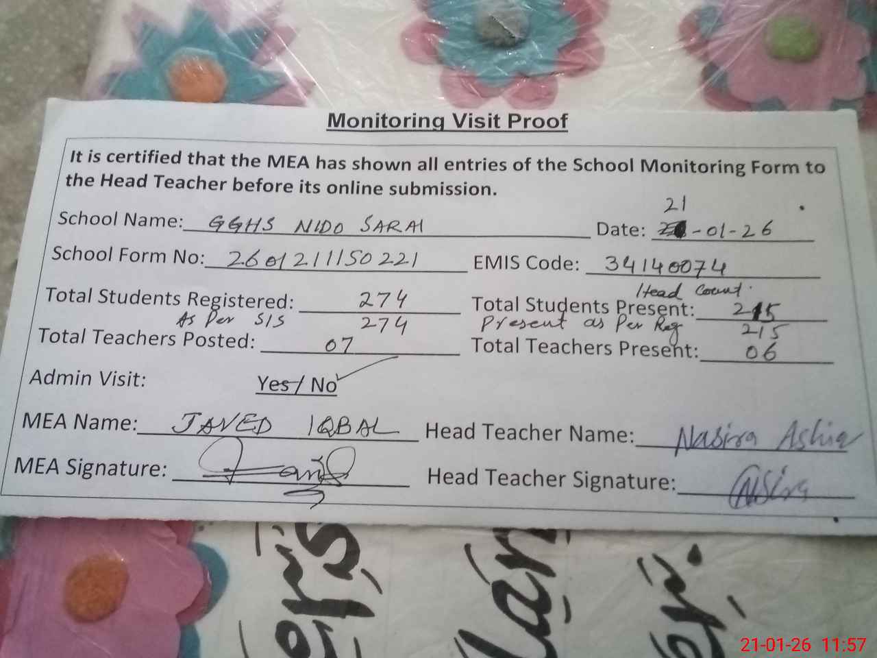 | EMIS Code: 34140074 | Name of School: GGHS NADO SARAI | |||