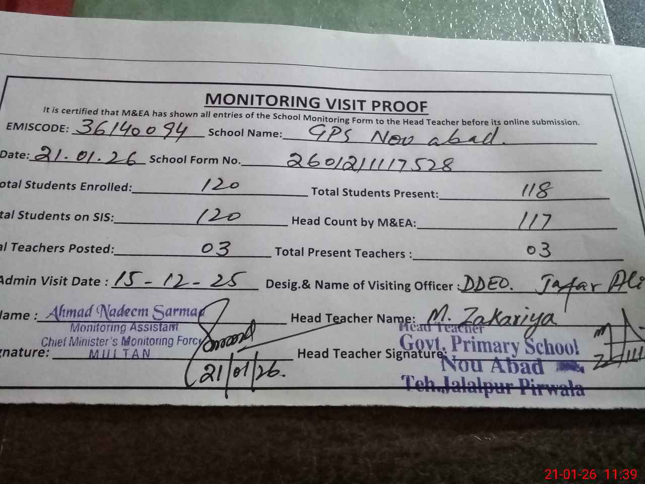 | EMIS Code: 36140094 | Name of School: GPS NOU ABAD JALALPUR PIRWALA | |||