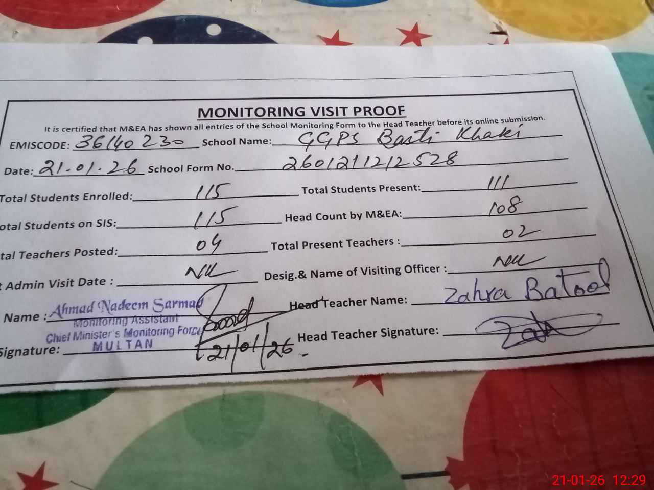 | EMIS Code: 36140230 | Name of School: GGPS BASTI KHAKI | |||