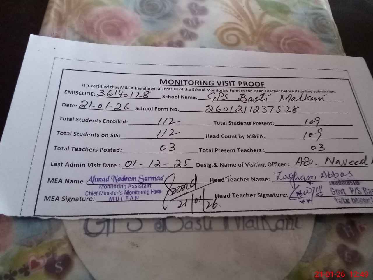 | EMIS Code: 36140128 | Name of School: GPS BASTI MALKANI P/O GHAZI PUR | |||