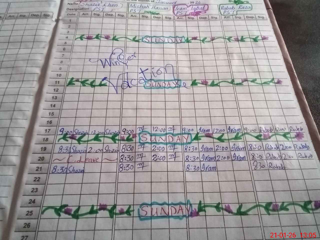 | Leave | Duty | Absent | Maternity | Medical | Ex- Pak |