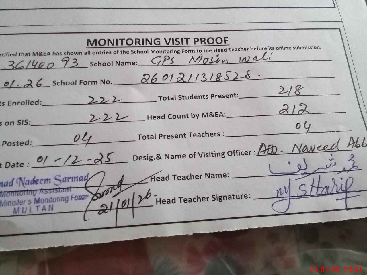 | EMIS Code: 36140093 | Name of School: GPS MOSIN WALI JALALPUR PIRWALA | |||