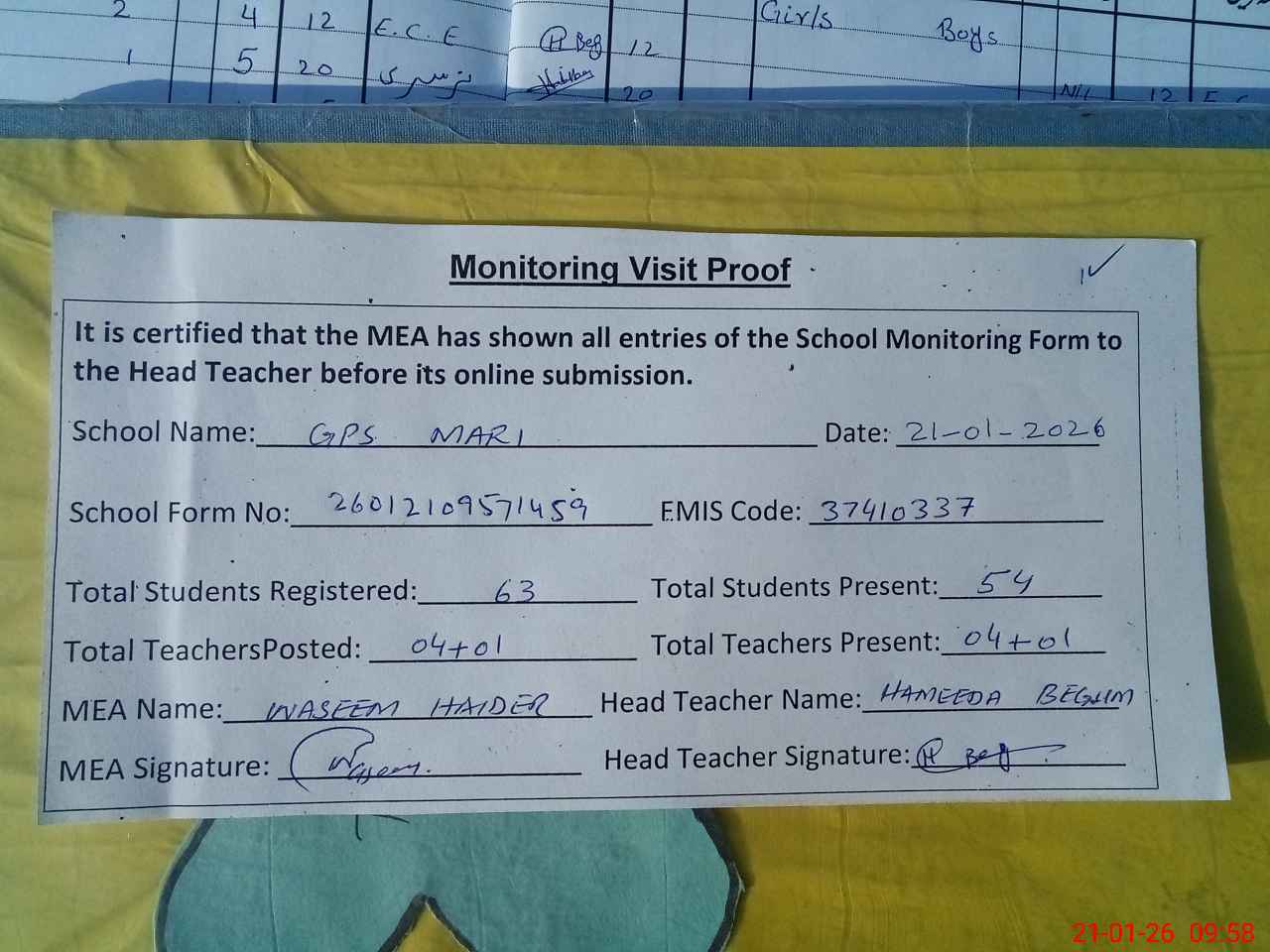| EMIS Code: 37410337 | Name of School: GPS MARI | |||