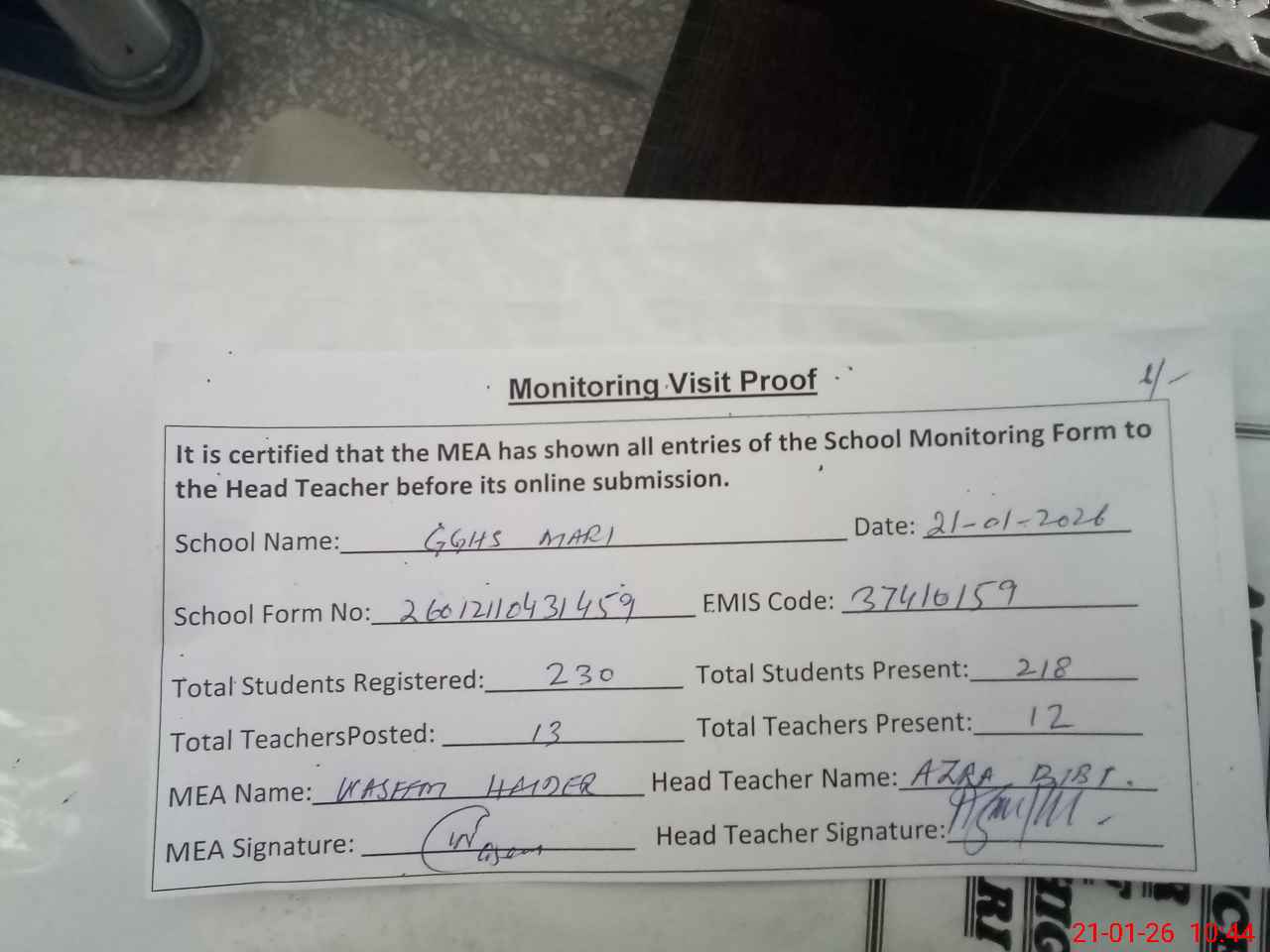 | EMIS Code: 37410159 | Name of School: GGHS MARI | |||