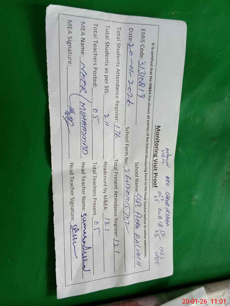 | EMIS Code: 31310819 | Name of School: GGPS PIRA BALOCH (After Noon) | |||