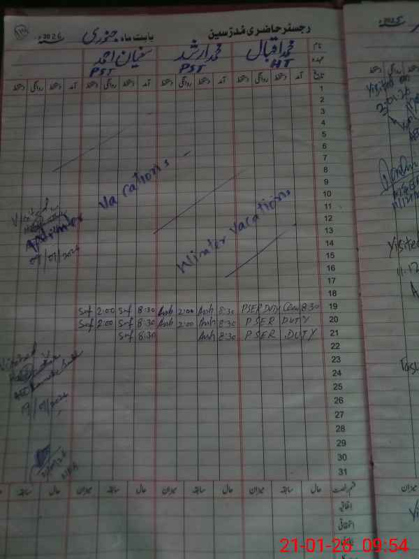 | Name: MU**** IQ**** Designation: (School Headmaster's/Headmistress's) PST Phone/Cell Number: 03**** |