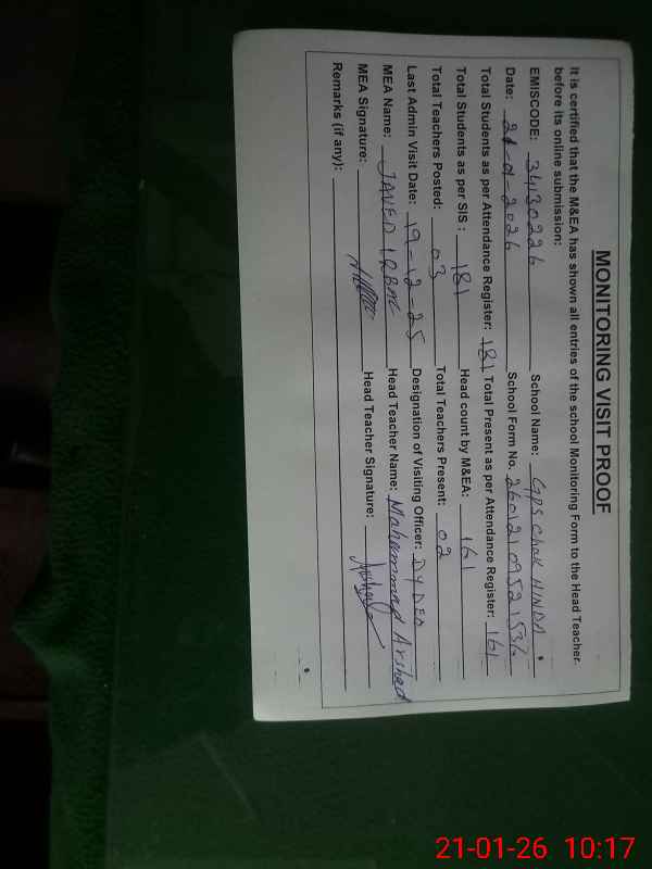 | EMIS Code: 34130226 | Name of School: GPS CHAK HINDA | |||
