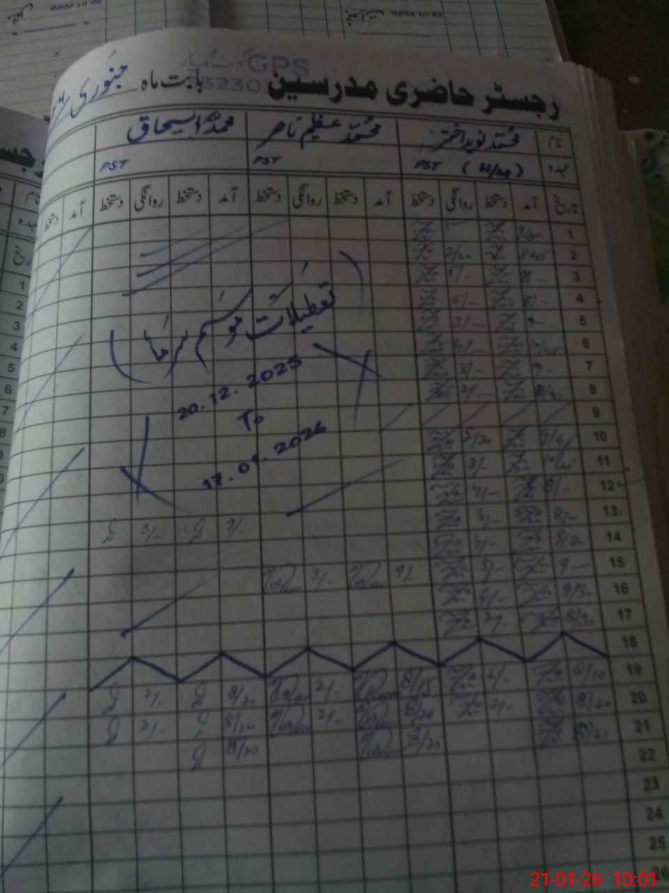 | CNIC | Full Name | Designation | R/C | Absence during last cal. month |