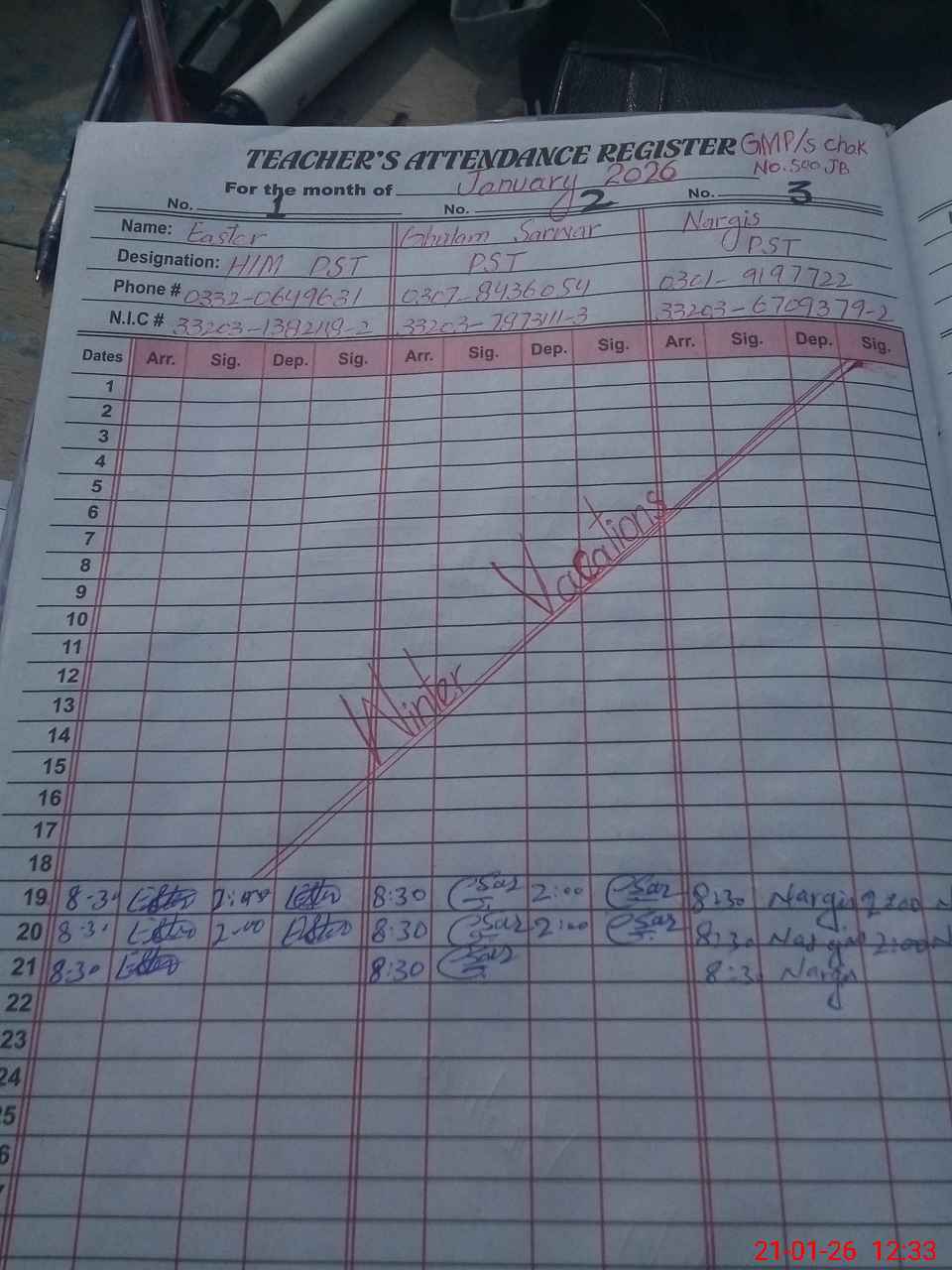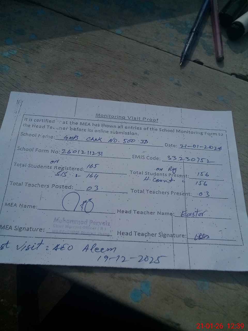 | EMIS Code: 33230752 | Name of School: GMPS CHAK NO. 500 JB | |||
