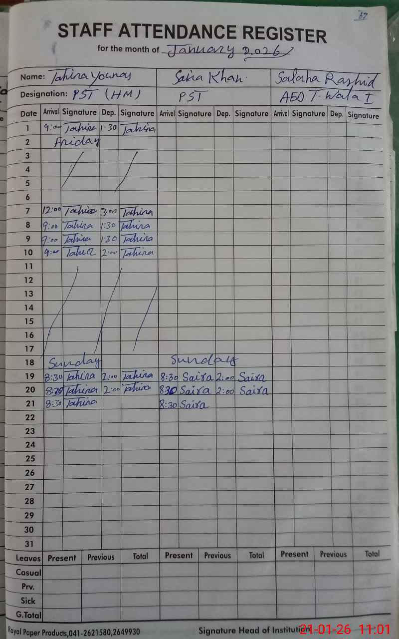 | Name: TA**** YO**** Designation: (School Headmaster's/Headmistress's) PST Phone/Cell Number: 03**** |