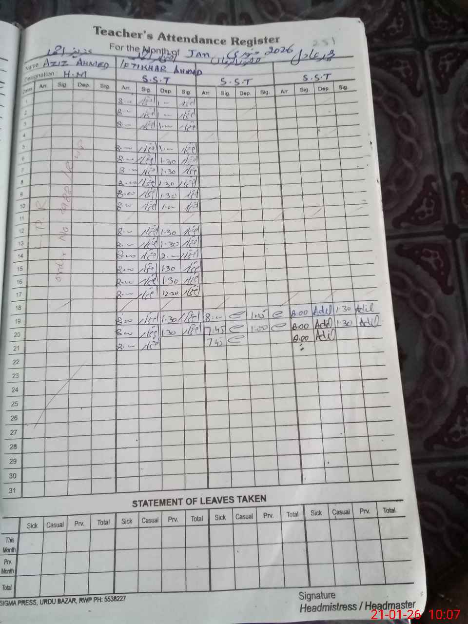 | Name: If**** Ah**** Designation: (School Headmaster's/Headmistress's) Ic HM Phone/Cell Number: 03**** |