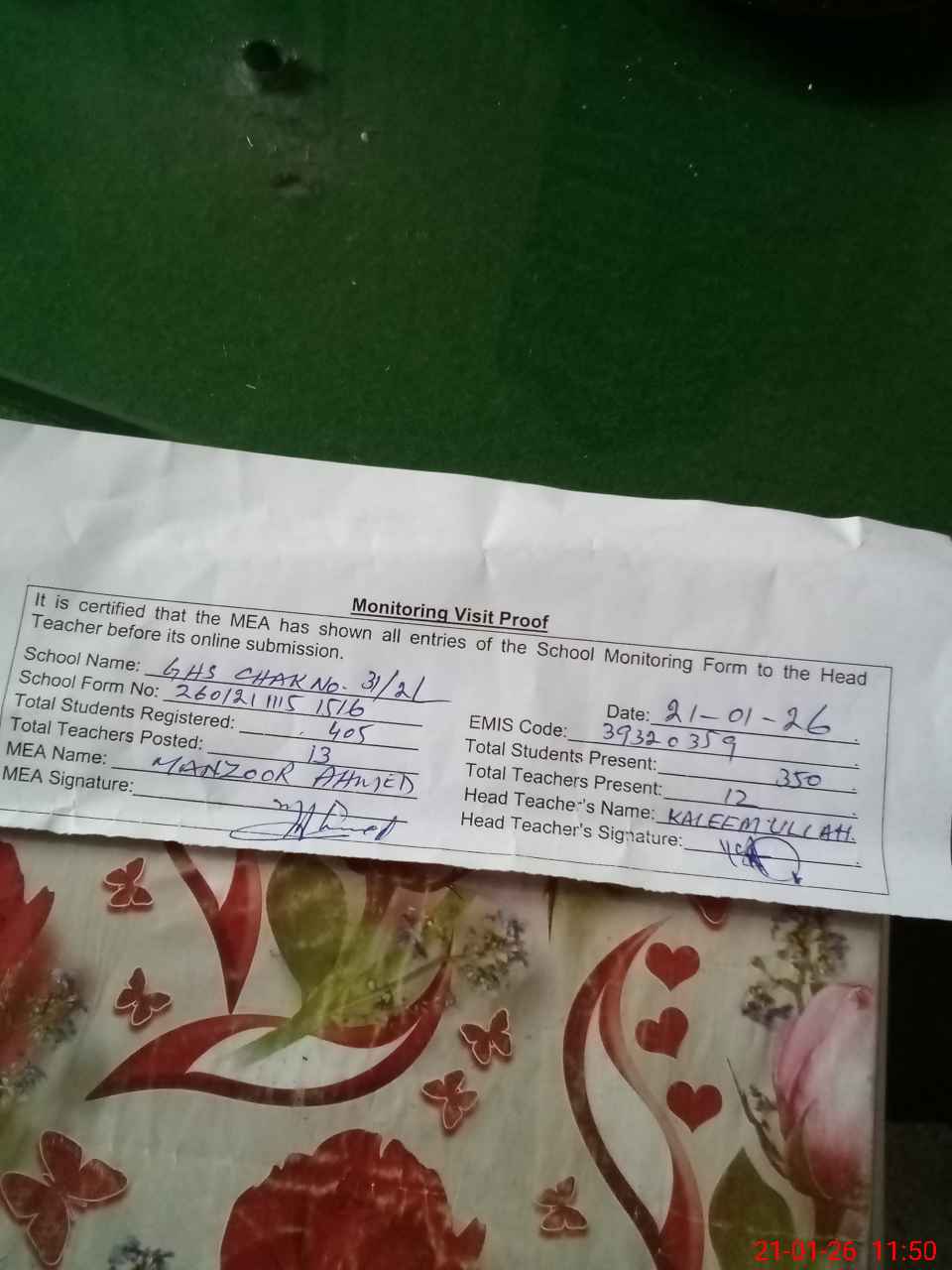 | Certified that this School was Inspected by the Undersigned MEA/DMO Today and the Information Stated Above is as Per Record. | |||||