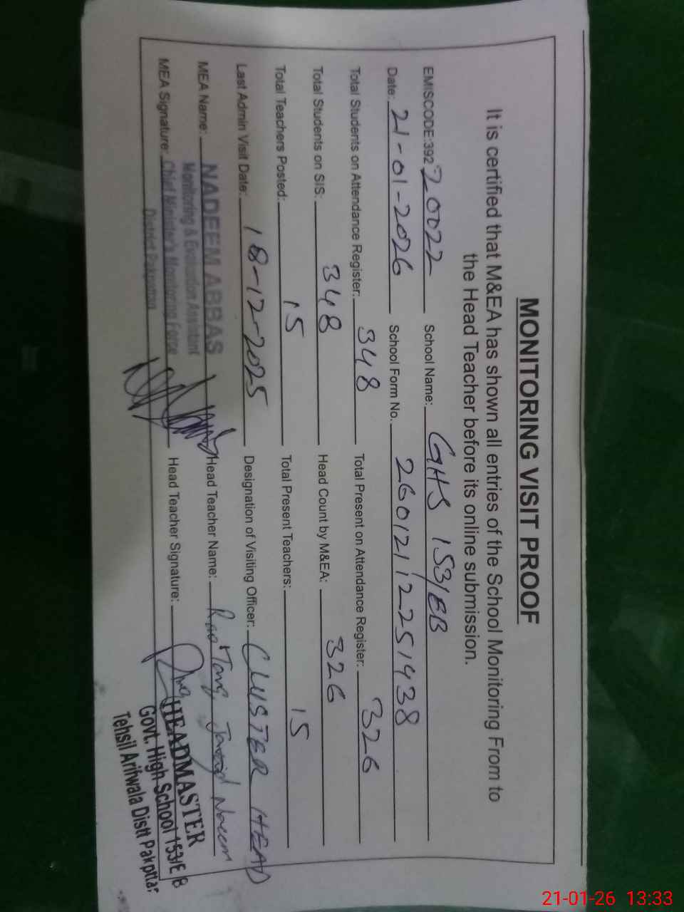 | EMIS Code: 39220022 | Name of School: GHS 153 EB | |||