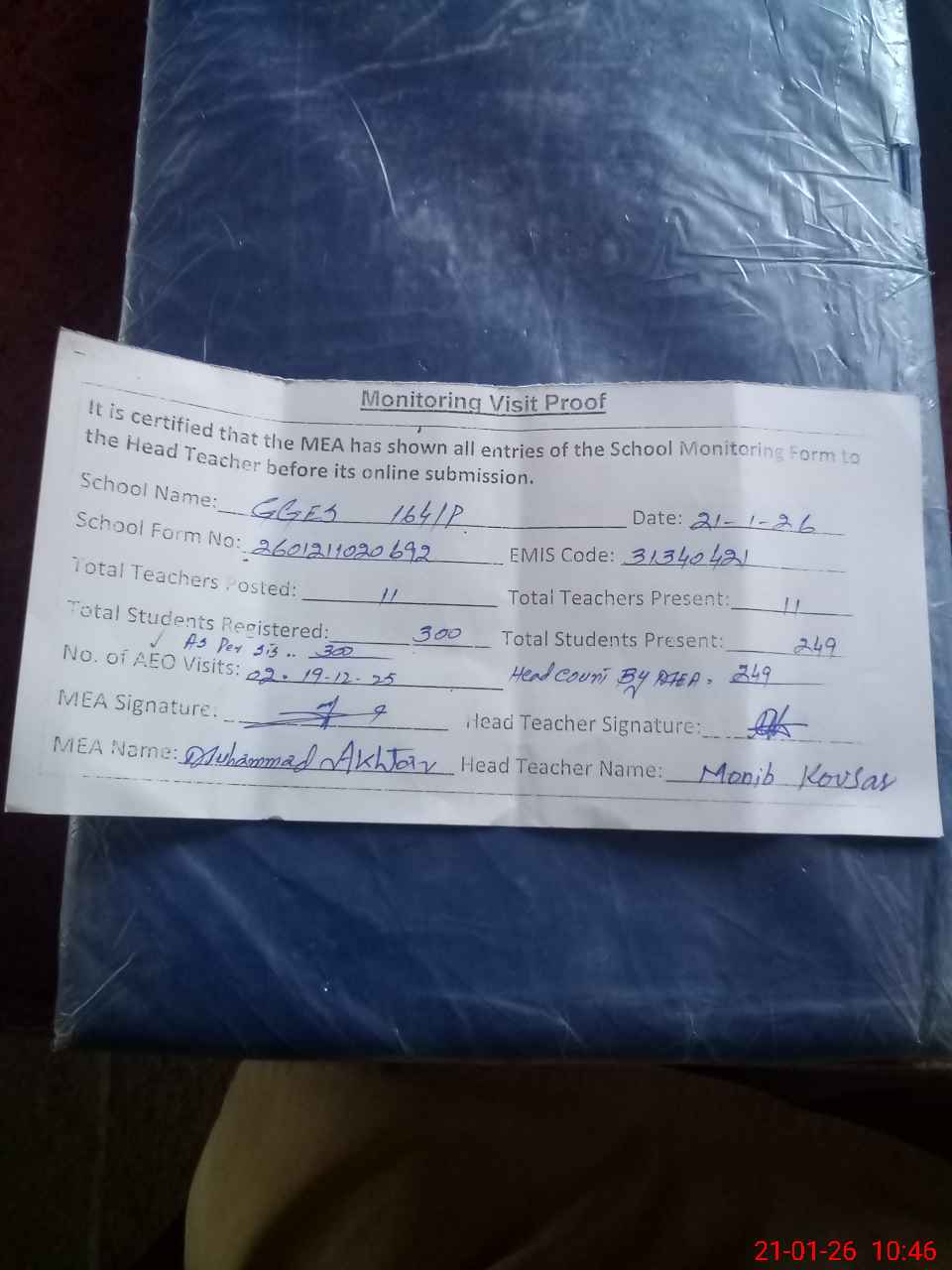 | Certified that this School was Inspected by the Undersigned MEA/DMO Today and the Information Stated Above is as Per Record. | |||||