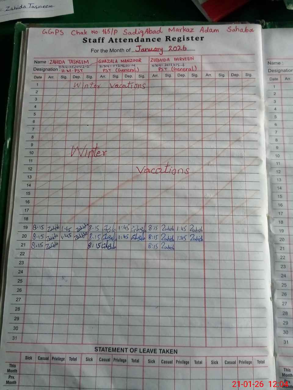 | Name: ZA**** Ta**** Designation: (School Headmaster's/Headmistress's) PST Phone/Cell Number: 03**** |