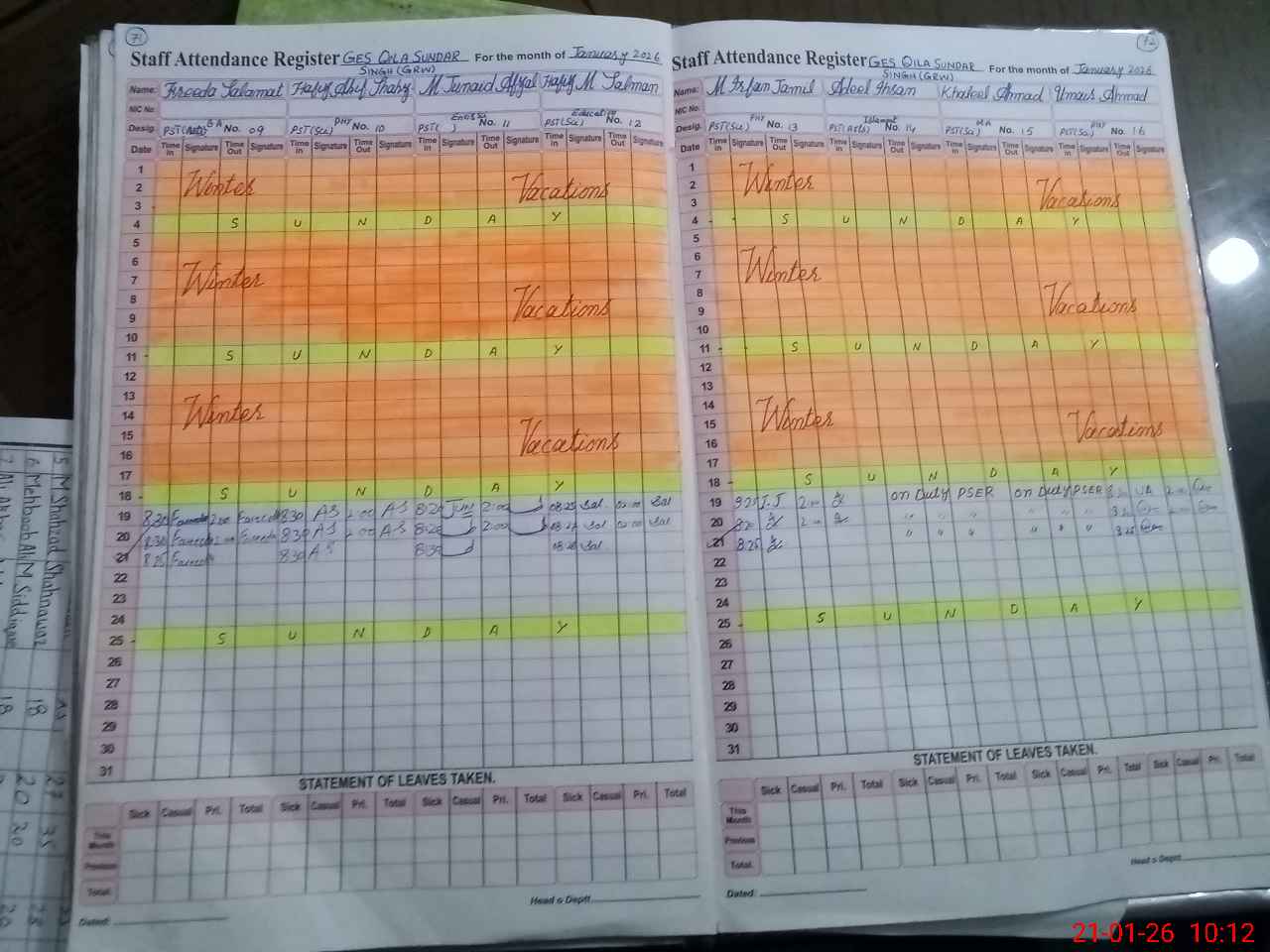 | CNIC | Full Name | Designation | R/C | Absence During Last Calender Month |
