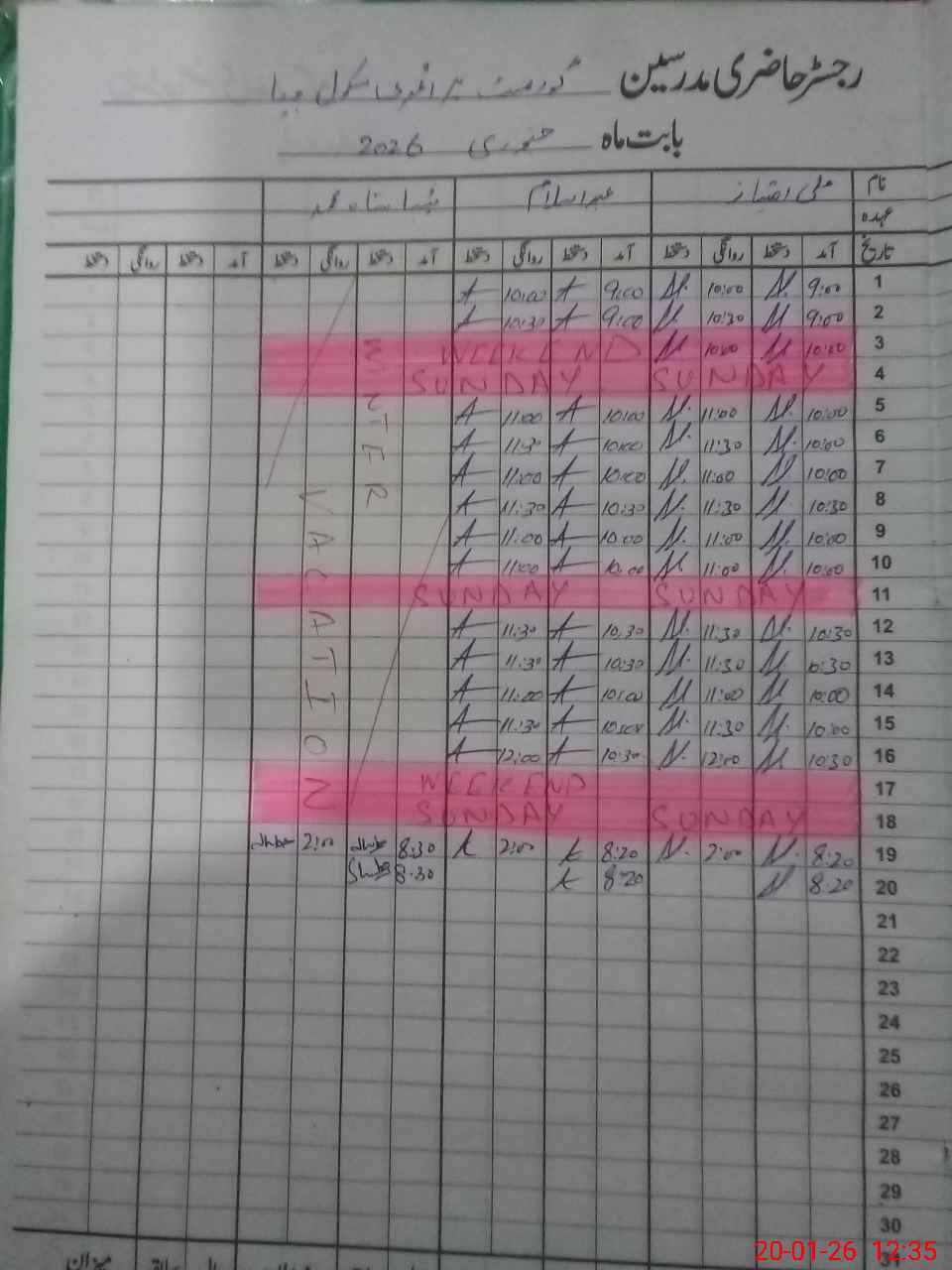 | CNIC | Full Name | Designation | R/C | Absence During Last Calender Month |