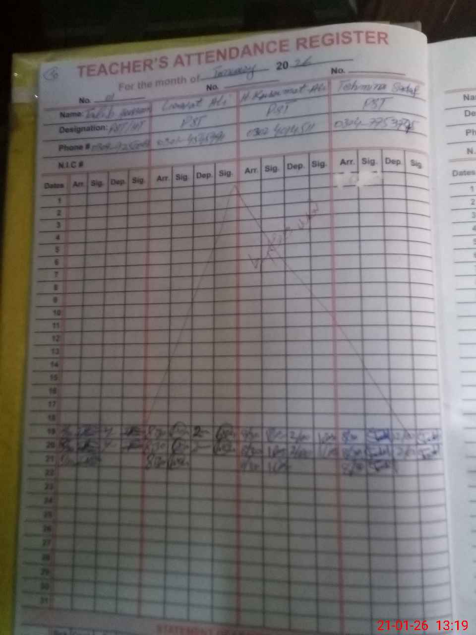 | CNIC | Full Name | Designation | R/C | Absence During Last Calender Month |