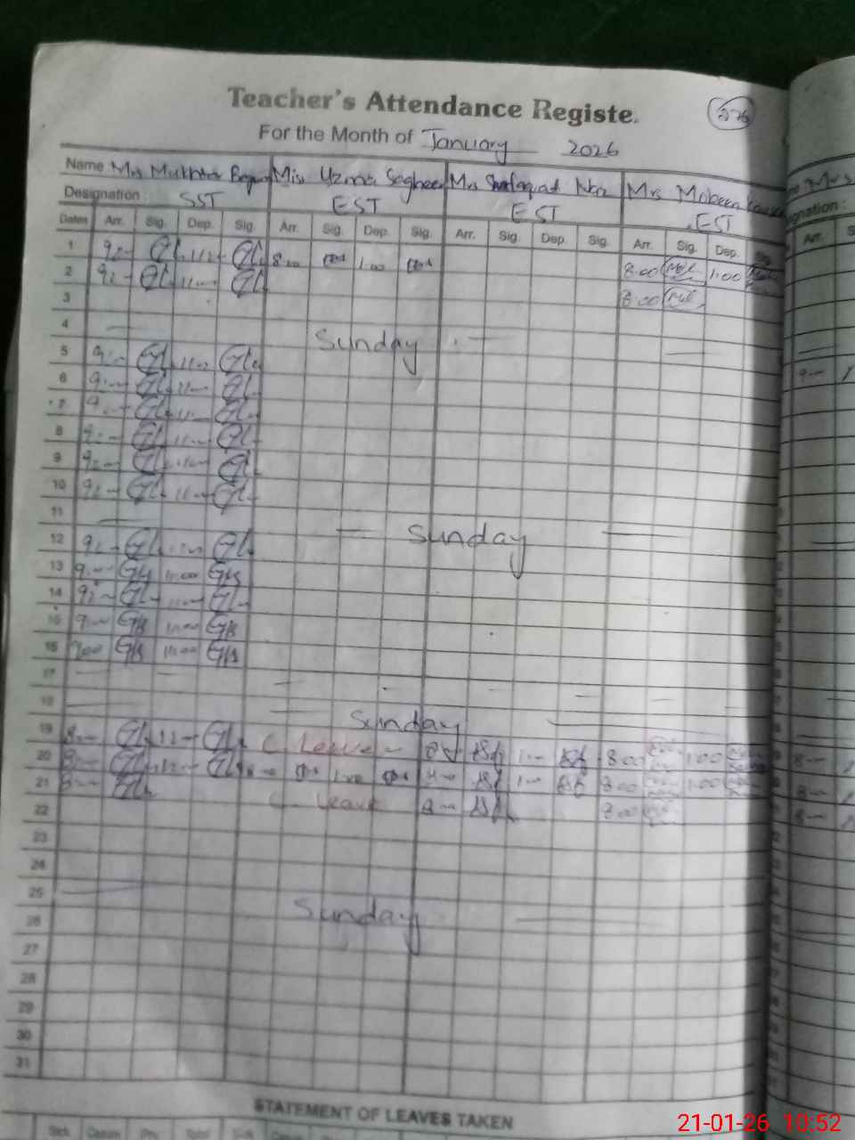 | Monitoring Date: 21-01-2026 | Start Time: 21-01-2026 10:28 AM | End Time: 21-01-2026 11:03 AM | Name of MEA: Ra**** Ra**** Al**** | |