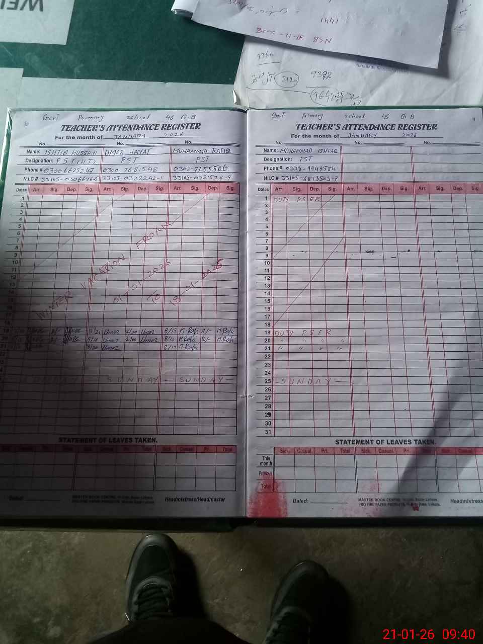 | Name: IS**** HU**** Designation: (School Headmaster's/Headmistress's) PTC Phone/Cell Number: 03**** |