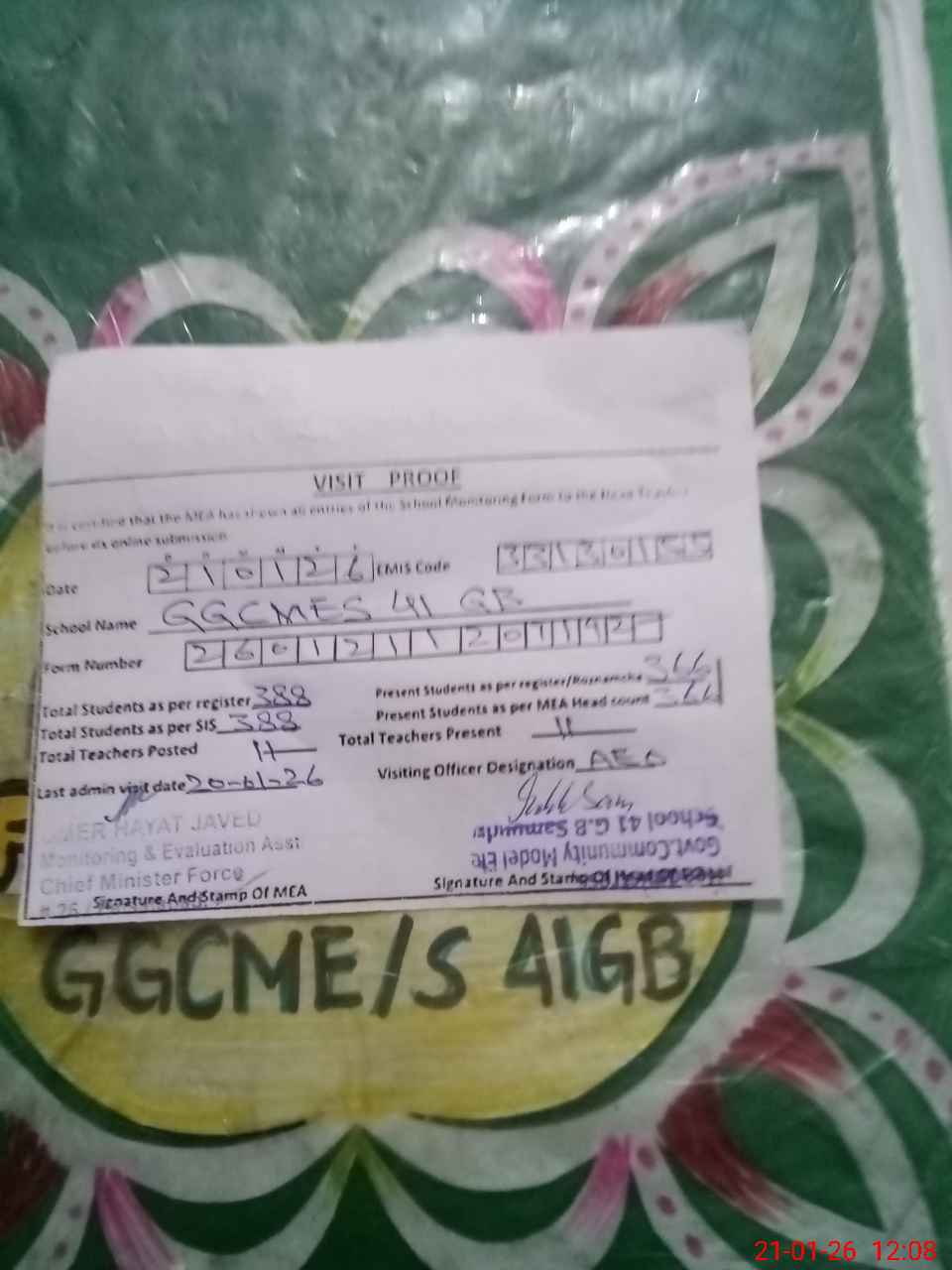 | EMIS Code: 33130155 | Name of School: GGCMES CHAK 41 GB SAMUNDRI | |||