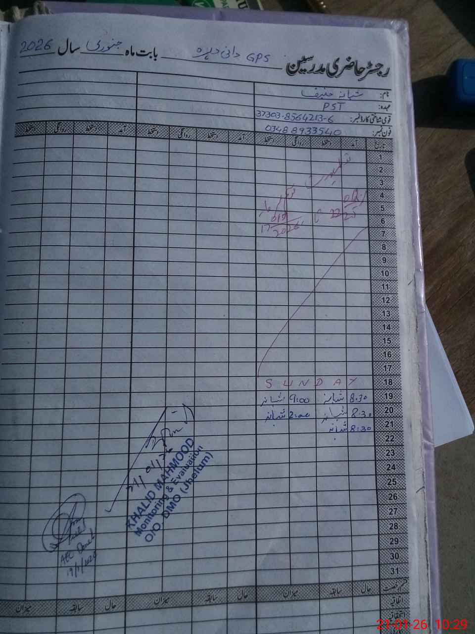 | Name: Kh**** Me**** Designation: (School Headmaster's/Headmistress's) HEADMASTER Phone/Cell Number: 03**** |