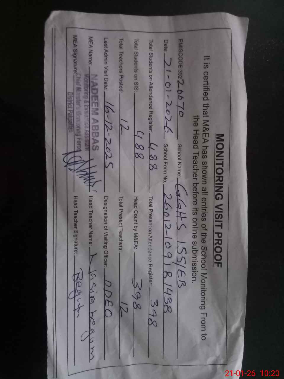 | EMIS Code: 39220070 | Name of School: GGHS 155 EB | |||