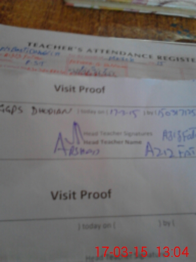| Name: AZ**** FA**** Designation: (School Headmaster's/Headmistress's) PST Phone/Cell Number: 03**** |