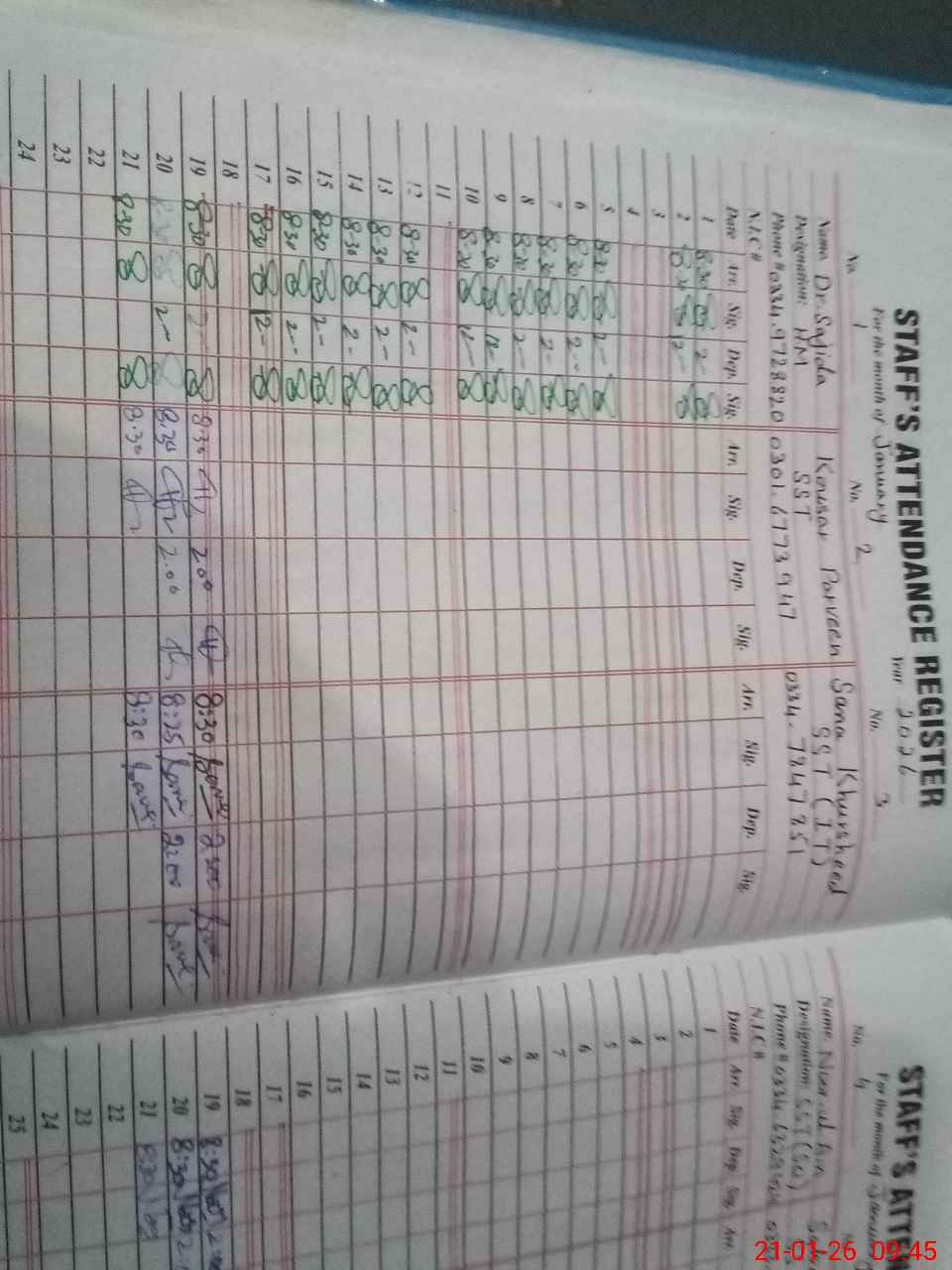 | 42**** | Am**** Al**** | NQ | Regular | 0 | 0 | 31 | 0 | 0 | 0 | 0 | 0 | 0 | Absent (Un-Authorized) |