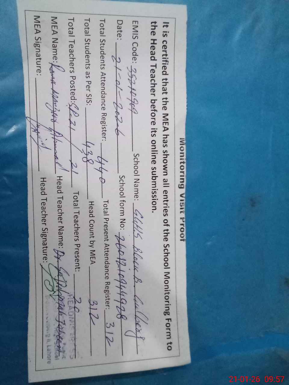 | EMIS Code: 35210909 | Name of School: GGHS PUBLIC MODEL BLOCK-B GULBERG-II (EX-MCL) | |||