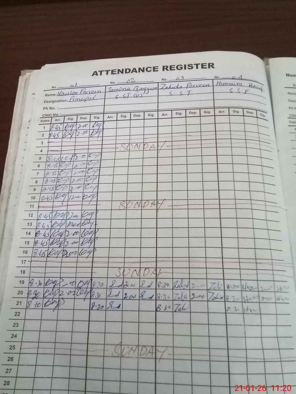 | CNIC | Full Name | Designation | R/C | Absence during last cal. month |